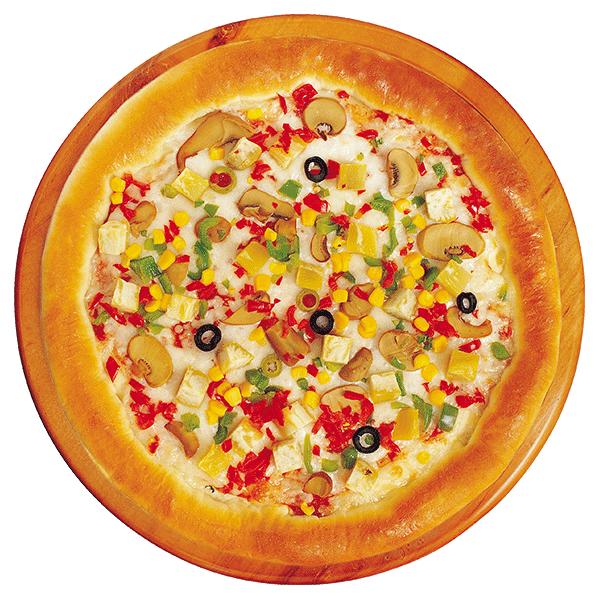 Black olives,Mushrooms, Capsicum, Tomatoes, Onions,Pineapple ,Herbs, Pizza sauce and Mozzarella cheese.